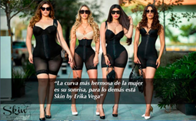 Nace Skin *Todas las fajas que había probado eran incómodas , solo podía aguantarlas por un par de horas”. palabras de Erika Vega. “Encontré telas terapéuticas y ortopédicas y Skin fue confecciona- da”. Las prendas fueron ideadas por una necesidad de su creadora que buscaba una faja que le permitiera llevarla puesta por largas horas para realizar todas sus actividades cotidianas sin crearle incomodidad, como una segunda piel. La primera cinturilla fue Skin Clásica, una faja tipo corsé con un nivel de ajuste y ziper que al subirlo automáticamente corrige la postura. Desde sus inicios en el 2020, este artículo fue muy vendido porque, además de ayudar a mejorar el aspecto, ayuda a mejorar la salud y con el máximo confort. Erika confirma que esta como sus demás cinturillas ayudan a calmar cólicos de menstruaciones, corrigen problemas de postura y columna vertebral y reducen hinchazón abdominal.